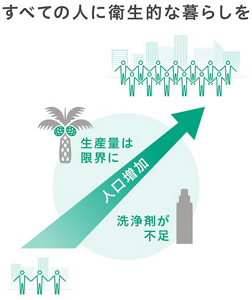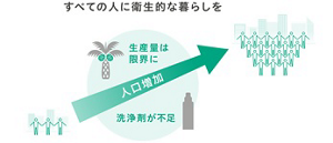 世界的な人口増加や急激な都市化に伴い、今後、より多くの洗浄剤が必要となっていきます。そこで花王は、これまで洗浄剤の原料としては有効活用が難しかった原材料に着目。長年の本質研究から生まれた知見を活用することで、アブラヤシの実から食用油を採取した後に残ってしまう固体状の油脂を原材料とする新しい洗浄基剤「バイオIOS」の開発に成功しました。
