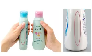 1991年からシャンプーとリンスを区別できるよう触覚記号“きざみ”を入れました。2015年から全身洗浄料にもシャンプーとは異なる触覚記号をつけました。