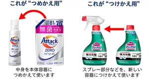 また、中身の性質や安全性の観点から、つめかえを消費者の皆さんにおすすめできない製品もあります。そのような場合は、スプレーなどの部品を再使用する、つけかえ用製品を用意しています。