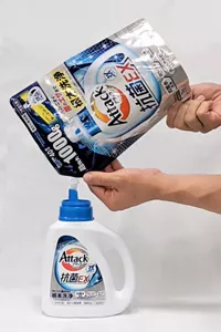 | ・衣料用液体洗剤など、中粘度の大容量の液体用のつめかえ用パックです。 ・液体が流路に沿って流れやすいように、注ぎ口にエンボス(凹凸の型押し)加工がされています。 |