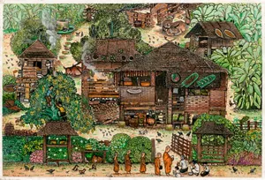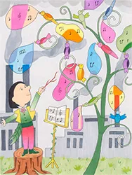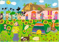 絵を通じて、自然は私たちの世界をすばらしいものにするために創造された、ということを描きました。よい環境で暮らすことは、幸せで歓びに満ちあふれています。また、自然と共存したシンプルな生活と、人と自然が寄り添うさまも表現しています。人がお互いに頼り、助け合いながら美しい環境を保護することが、幸せな人生を歩むための方法なのです。