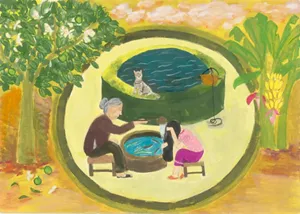 祝日やお正月のたびに、両親は姉と私を、窮屈で空気の汚い都会から離れた、空気のきれいな静かな田舎町に連れて行ってくれました。これを知った祖母は菜園に行き、グレープフルーツの葉やレモングラス、バジルを摘んで、焼いたイナゴマメと一緒にゆで、姉と私の髪を洗うための液を作ってくれました。葉っぱやイナゴマメのよい香りがし、髪がやわらかくなりました。髪を洗った後、手ぐしを入れながら、髪の香りを楽しみました。帰るとき祖母が、私たちが少しずつ使えるようにと、葉っぱやイナゴマメをいくらかまとめて持たせてくれました。