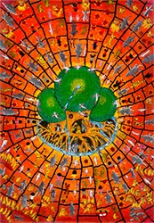 全ての木を一緒くたに捉えるのではなく、一本一本が違うものとして描かれている。独創的な感性が投影された、今までに見たことのない作品だ。さまざまな地域の異なる特色を持った木々を、細部にわたって描くことで、その土地土地で懸命に生きている命の尊さを巧みに表現している。人間が、木によって世話の仕方を変えているところにも非常に感銘を受けた。色彩はとてもシンプルだが、生命の多様性を感じることができる。