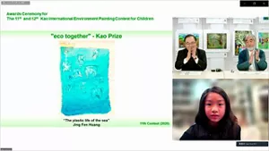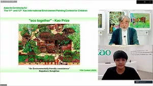 コロナ禍の海外渡航制限のため、東京での開催を中止した表彰式に代えて、2022年3月27日に、第11回・第12回合同のオンライン表彰式を開催しました。第11回「“いっしょにeco” 地球大賞」「“いっしょにeco” 花王賞」の受賞者9名全員が、第12回受賞者とともに、世界各地から参加しました。