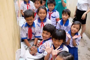 アンザン省で児童たちと正しい手洗い方法の確認(第1期)