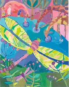 「水を大切に」をテーマに掲げ、きれいな水がある場所にしか飛ばないトンボを素直に表現した興味深い作品だ。トンボは寒色、キリンたちは暖色といった色の配分は、豊かな色彩感覚をうかがわせ、トンボと共存する動物たちの描き方のバランスもすばらしい。
