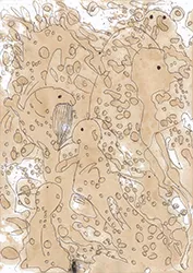 非常に謎めいた作品だが、じっくりと眺めていると、いろいろな有機体に目だけが見えてくる。特定できない生き物を自分たちの「兄弟」だと表現している点が非常におもしろく、哲学的かつ魅力的な作品だ。