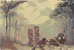 クラシカルな油彩画のような色づかいが独特。視線が非常に低く、手前にいる鳥の目線で描かれているのだろうか。動物の視点から環境を見るというとらえ方がユニークであり、気づかされることがたくさんある。