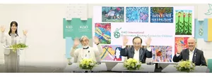 「“いっしょにeco”地球大賞」(1点)に選ばれたのは、Kodchapan Malisornさん(14歳)の「木の出家 - 森を守る仏教儀式」です。審査員からは、「大木と小さく描かれた人間との対比で、木が特別な存在であることを表現している。」「人々が長い時間をかけて木を大事にし、これからも大事にしていくという強いメッセージを感じた。」といった講評がありました。このほか、「“いっしょにeco”花王賞」8点、「優秀賞」23点(うち審査員推薦作品7点)を決定しました。