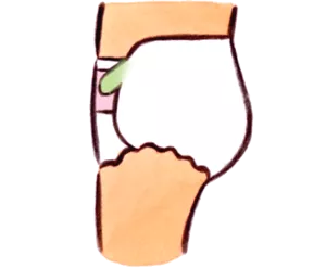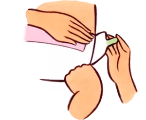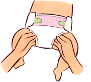 Наденьте подгузник таким образом, чтобы передняя часть была немного выше задней, и застегните липучки, чтобы пупок был скрыт. Проверьте, что пенис у мальчиков направлен вниз.