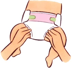 Когда надеваете подгузник, убедитесь, что натягиваете его достаточно высоко, чтобы избежать протекания.