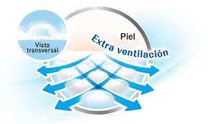 El calor se libera directamente a través de los espacios entre los canales de la cintura y la piel del bebé. La humedad se expulsa hacia afuera.