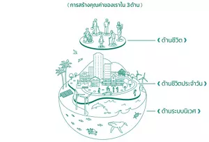 เรามุ่งมั่นที่จะสร้างโลกในแบบคิเรอิ หรือโลกที่ทุกชีวิตจะสามารถอยู่ร่วมกันได้อย่างมีความสุขผ่านความพยายามทั้ง 3 ด้านของเรา คิเรอิที่ทำให้ชีวิตของคนแต่ละคน