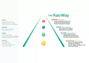 เรามุ่งมั่นที่จะเป็นองค์กรที่มีคุณค่าและขาดไม่ได้ในสังคมที่ยั่งยืน ด้วยการปลดปล่อยพลังและศักยภาพของพนักงานอย่างเต็มที่ ผลักดันการพัฒนา Yoki-Monozukuri และปรับเปลี่ยนธุรกิจเพื่อยกระดับคุณค่าขององค์กร จุดแข็งของเราคือความเชี่ยวชาญทางวิทยาศาสตร์อันเป็นเอกลักษณ์ และทุกสิ่งที่เราดำเนินการล้วนตั้งอยู่บนวิถีทางของคาโอ ปรัชญาองค์กรที่เรายึดมั่นไม่เปลี่ยนแปลง