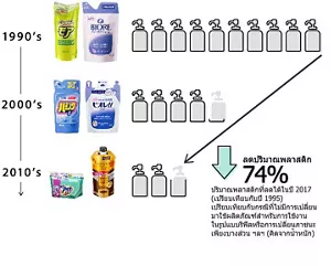 การเปลี่ยนมาใช้ผลิตภัณฑ์สำหรับการใช้งานในรูปแบบรีฟิลหรือการเปลี่ยนภาชนะเพียงบางส่วน และการลดปริมาณพลาสติก