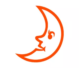 月亮的笑臉變得更具親切感,顏色也改為溫暖的橘紅色。