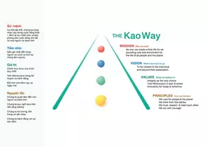 Các công ty thuộc Tập đoàn Kao và các thành viên chia sẻ “Phương Châm Kao” không chỉ đơn thuần là sự hướng dẫn hay thiết lập những quy tắc mà còn là nền tảng để từ đó chúng tôi có thể xác định giá trị công việc cũng như những mối quan tâm mà chúng tôi sẽ phải đối diện.